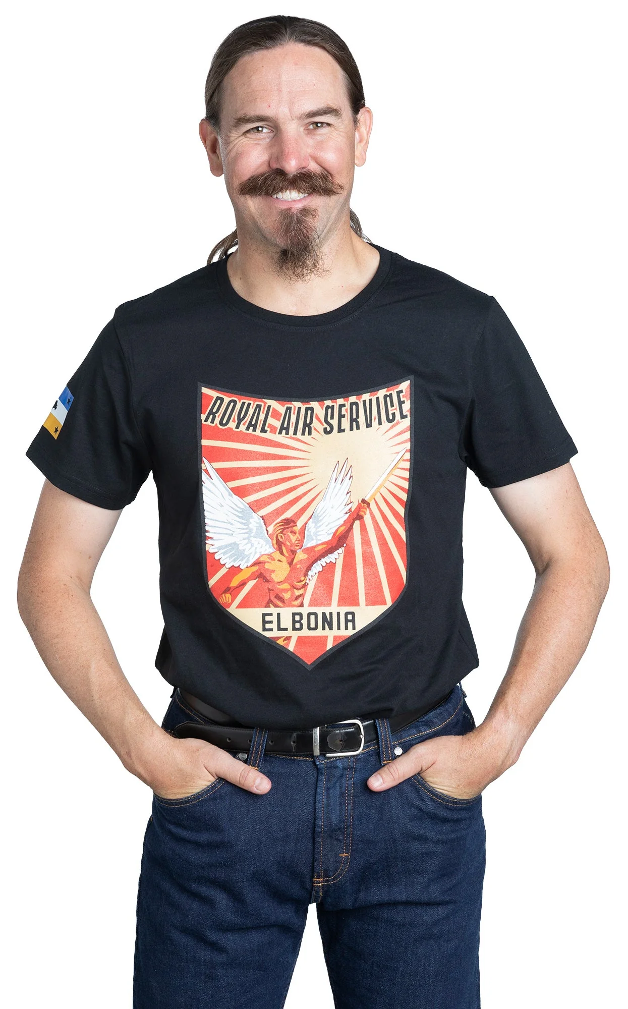 Suuren ja mahtavan Elbonian kansalaisilla ei ole varaa ostaa näin laadukasta T-paitaa, joten tee se heidän puolestaan! Rinnassa komeilee pelottavien Royal Air Service -erikoisjoukkojen tunnus. Tehty kierrätysmatskuista.