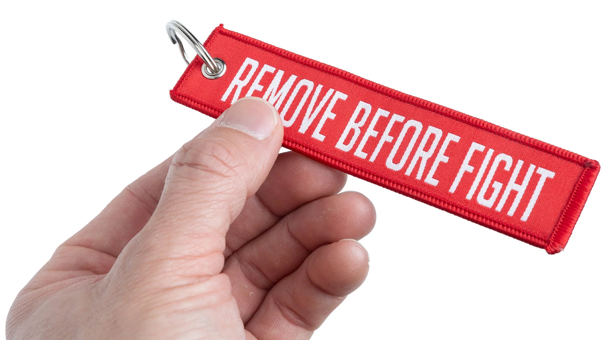Varusteleka avaimenperä, REMOVE BEFORE FIGHT