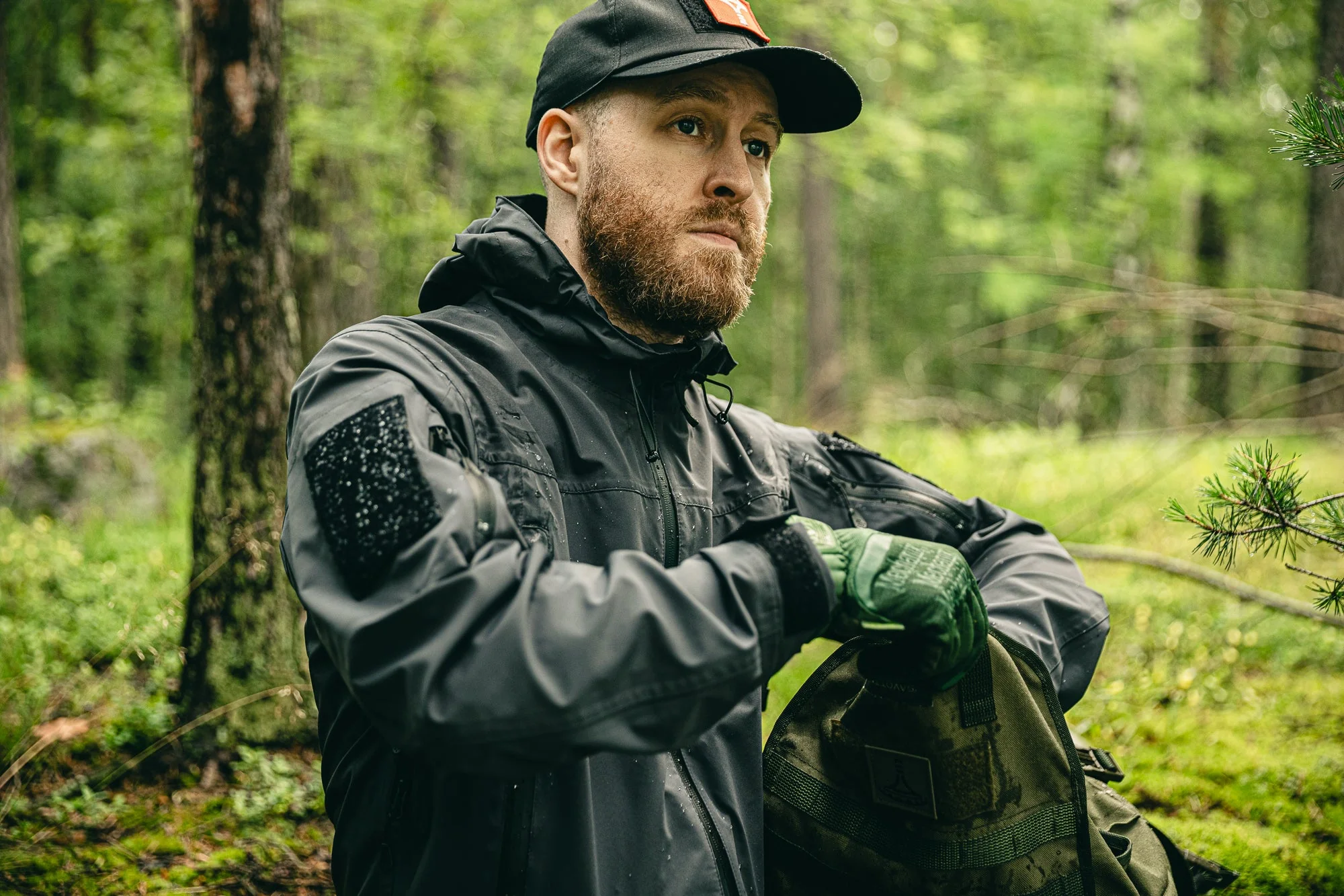 Rotsi on valmistettu kestävästä kolmikerroslaminaattikankaasta, jossa sisällä on vedenpitävä kalvo. Lisäksi päällä on vettä ja likaa hylkivä käsittely ja saumat on teipattu. Kalvotakki hengittää reippaasti paremmin kuin perinteiset kumiset sadetakit. Tämä takki vielä reilusti paremmin kuin se aiempi kiinalainen. Lisäksi tuuletusta voi parantaa rankemman toiminnan aikana kainalovetskarien ja hihojen tarranauhasäätöjen avulla. Toki kantsii muistaa, että kalvovaatteet hengittää aina huonommin kuin vettä ja ilmaa läpi päästävät luonnonmateriaalit. Jotain täytyy uhrata, kun halutaan suojautua vedeltä.